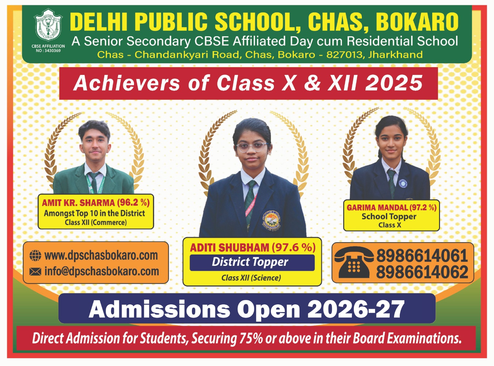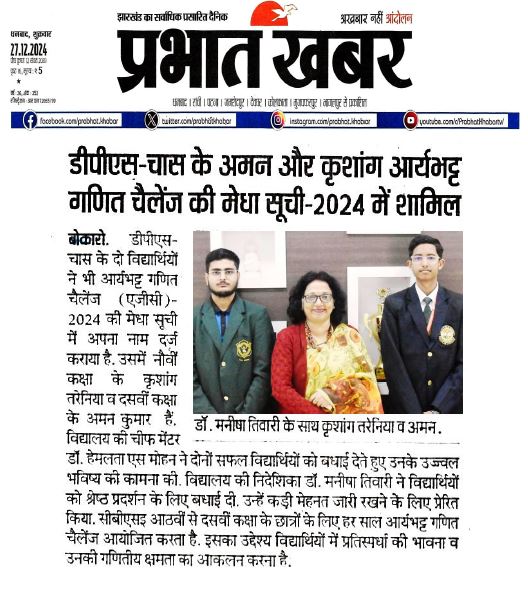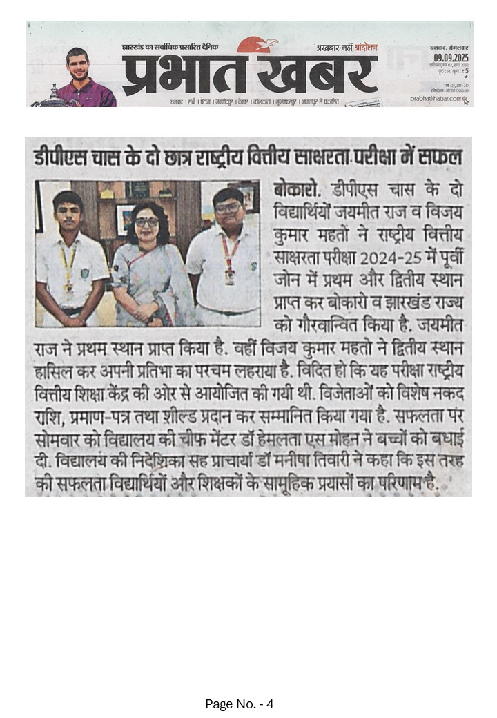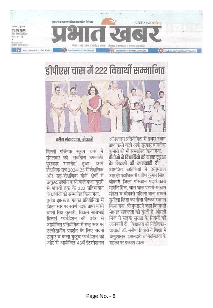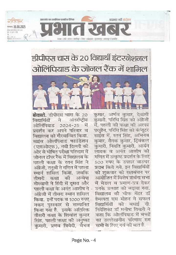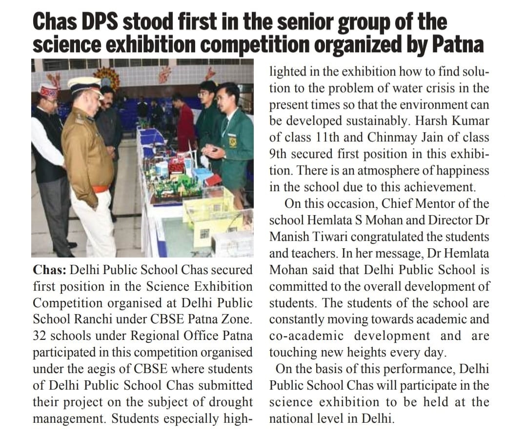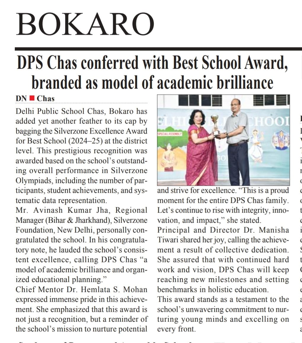 Delhi Public School, Chas, a Day Cum Residential School, affiliated to CBSE (Affiliation No.-3430369), is part of the renowned DPS Society serving globally in education.