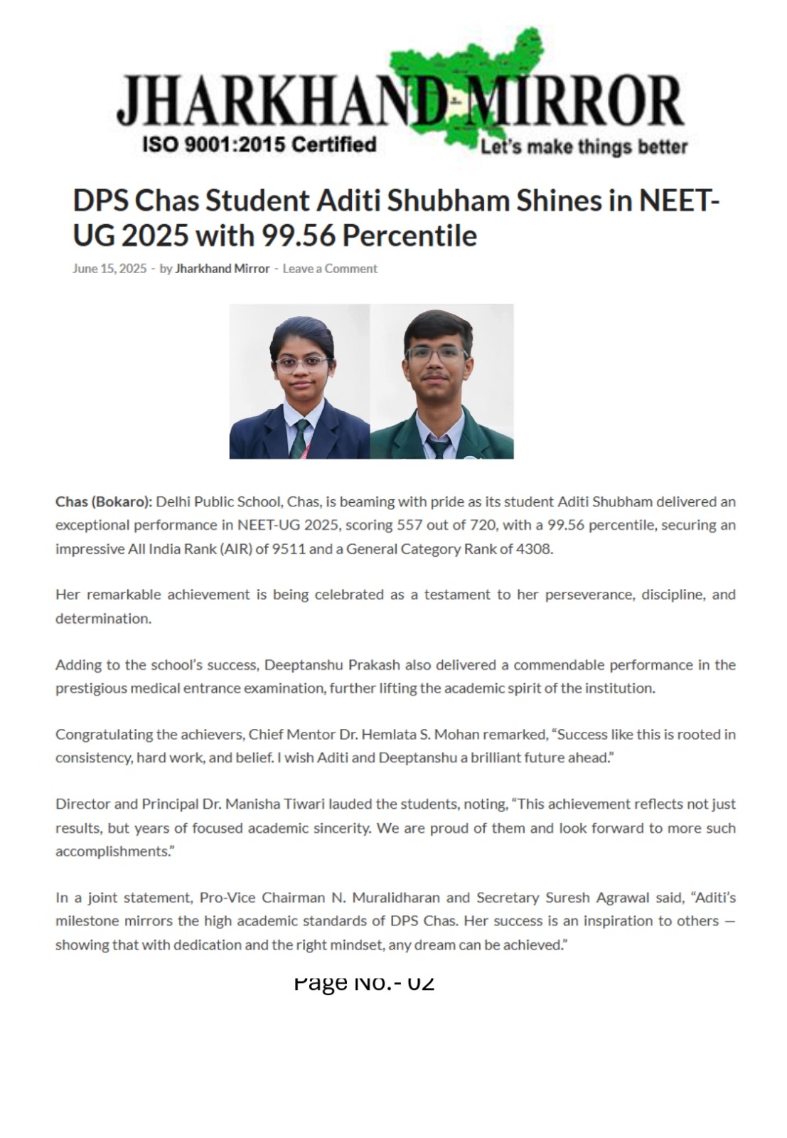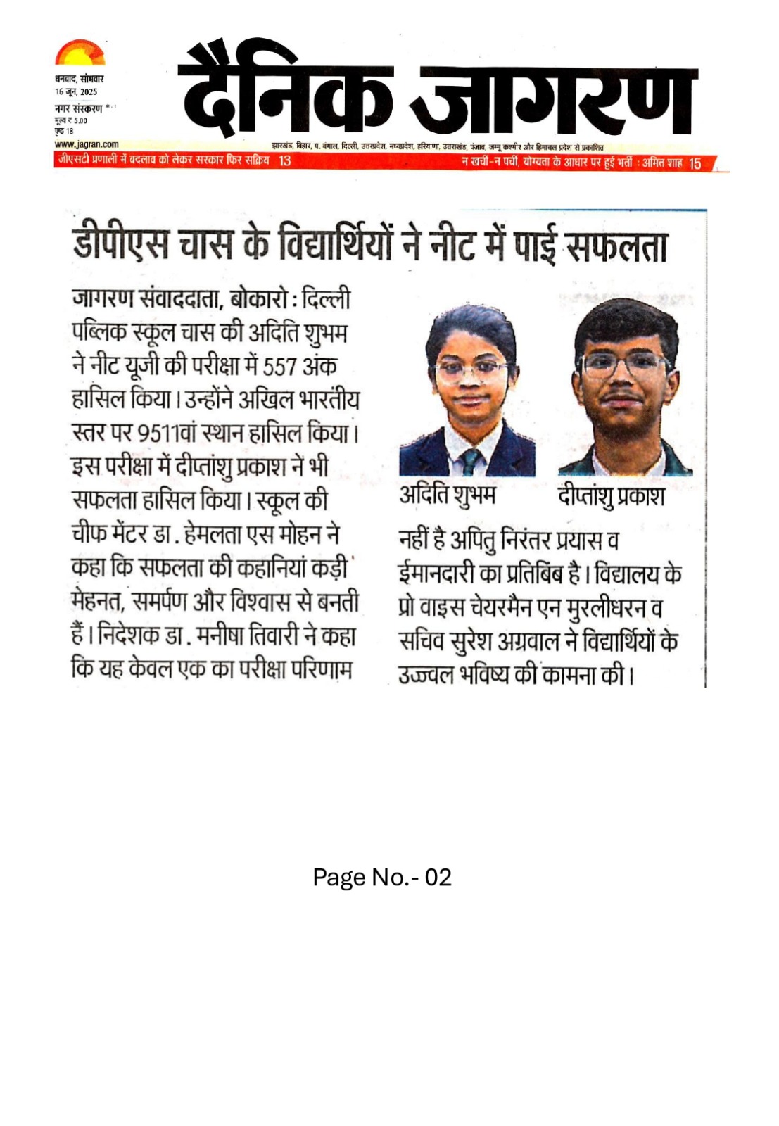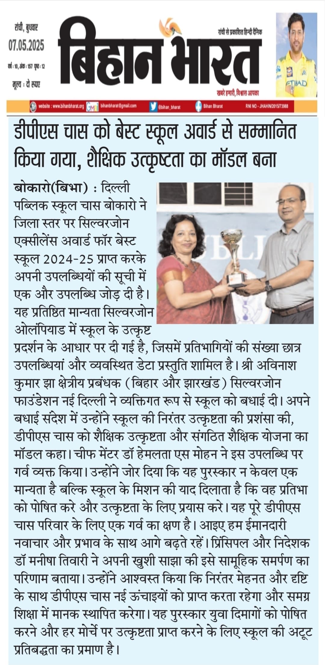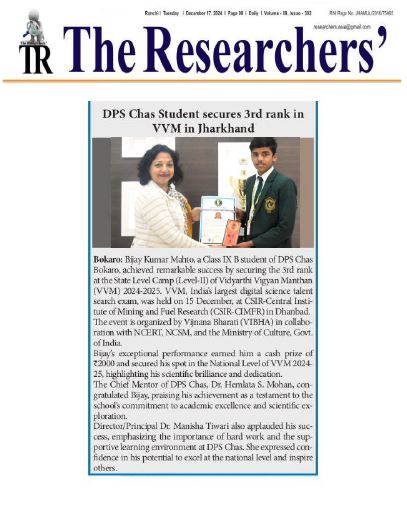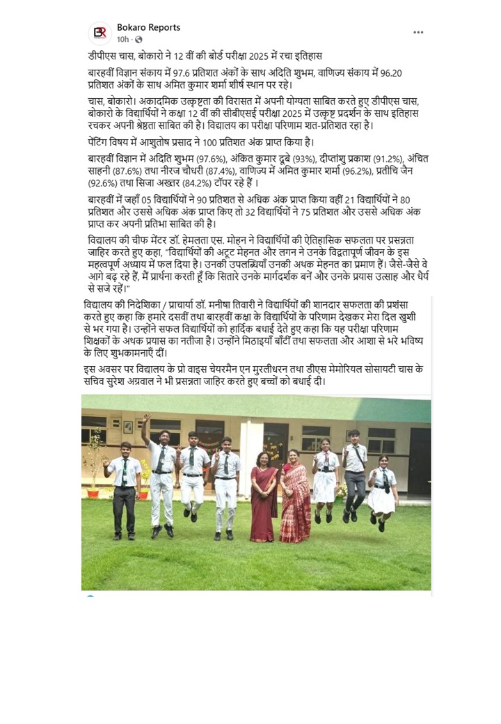 DPS Chas is providing an excellent environment not only in academics but also for all-round development of students. I believe that they would become architects of nation and good human beings too. Being a parent of a senior class student, I look forward for their proactive learning methods & valuable guidance especially during this pandemic crisis. My good wishes.